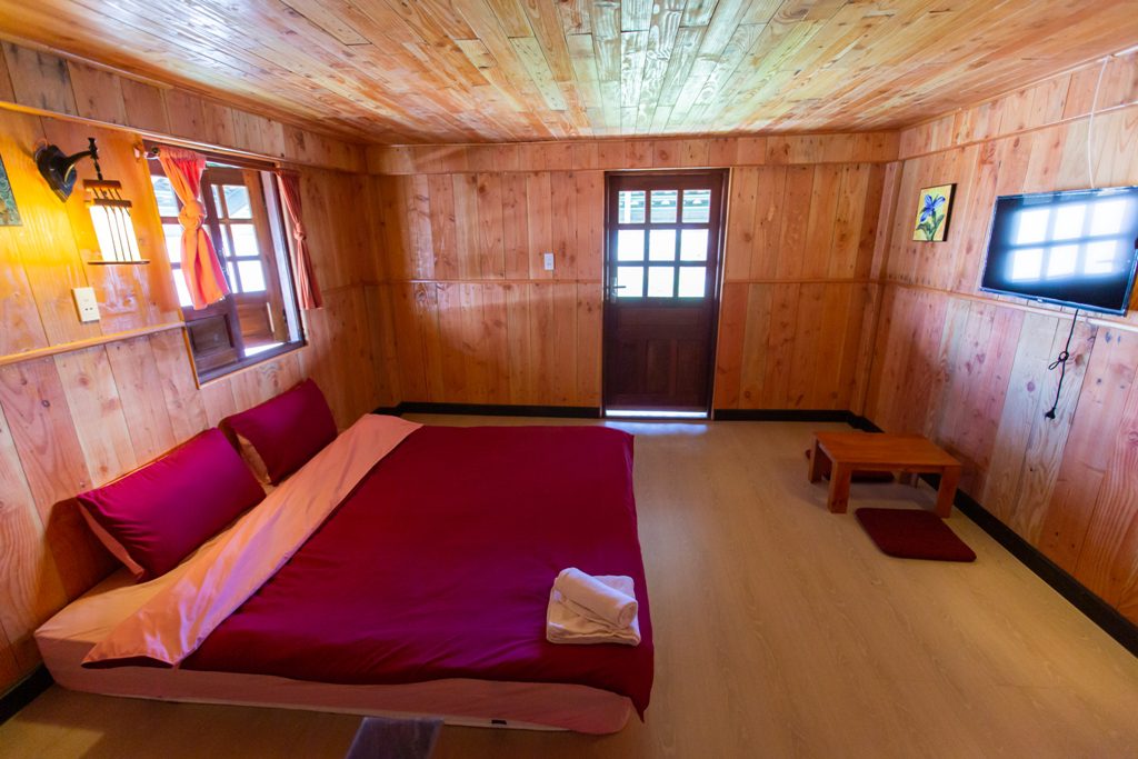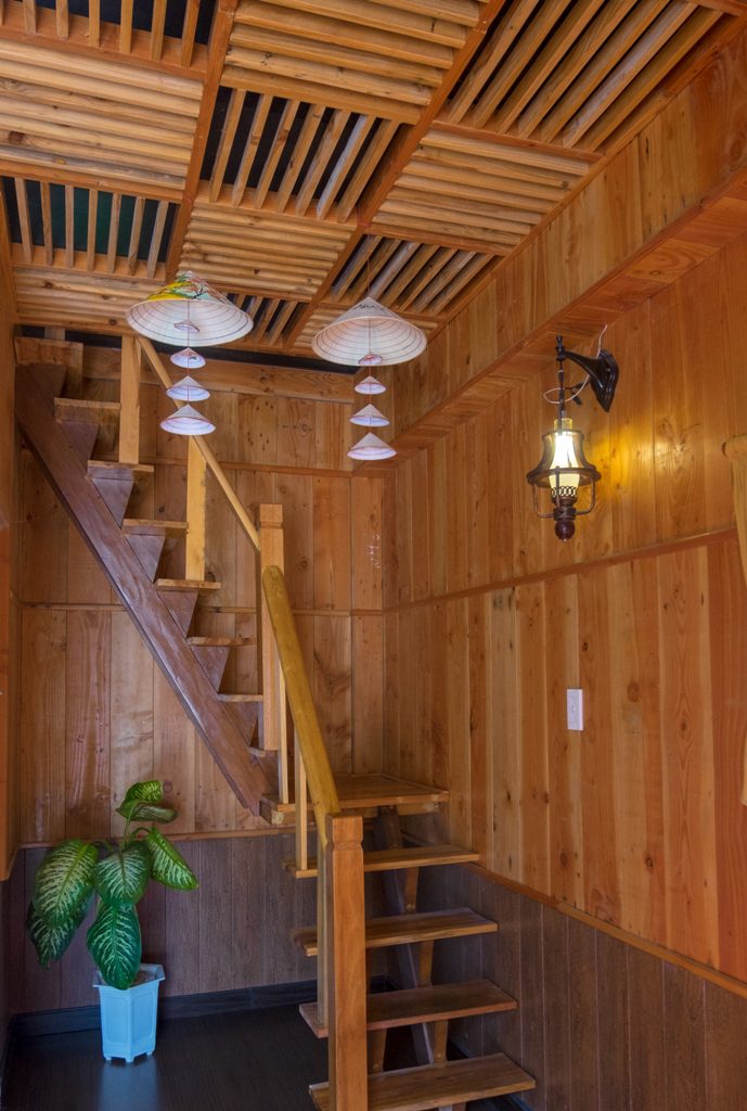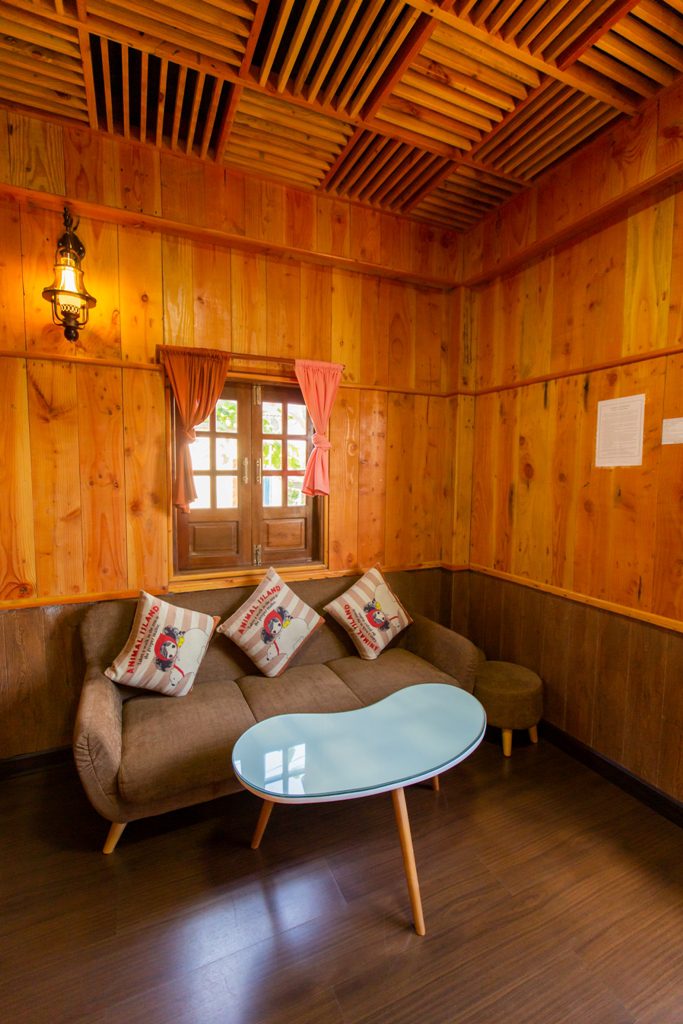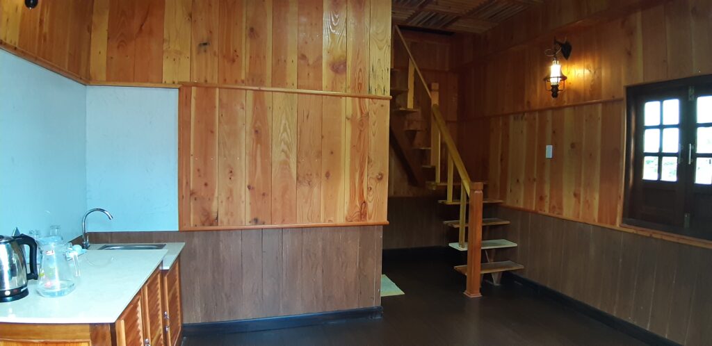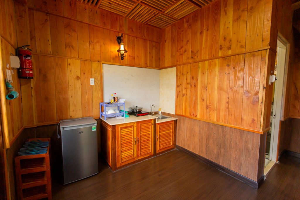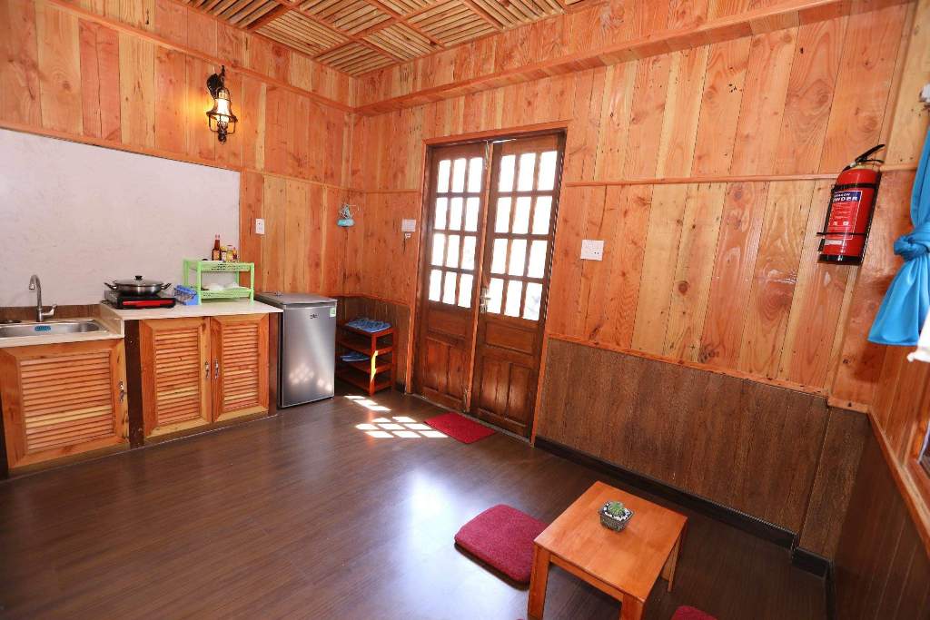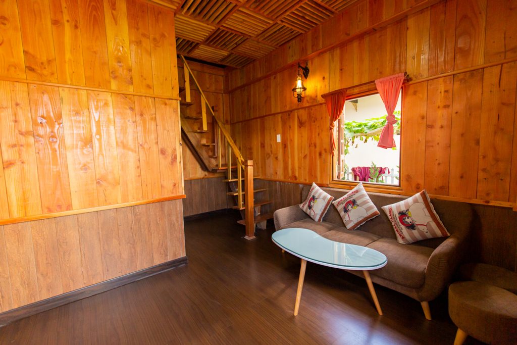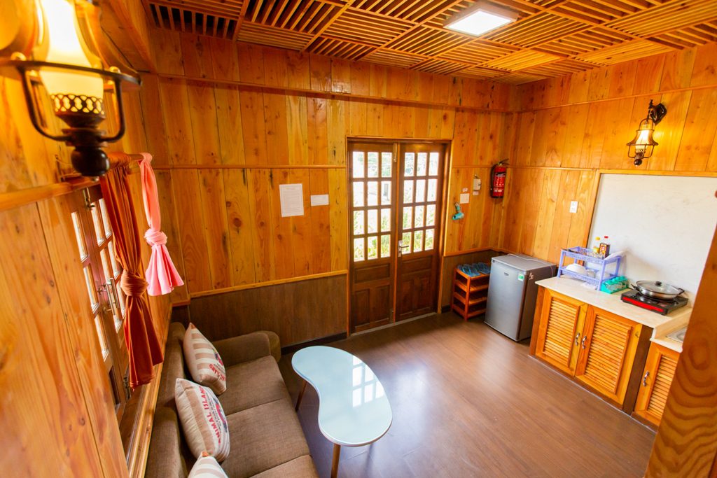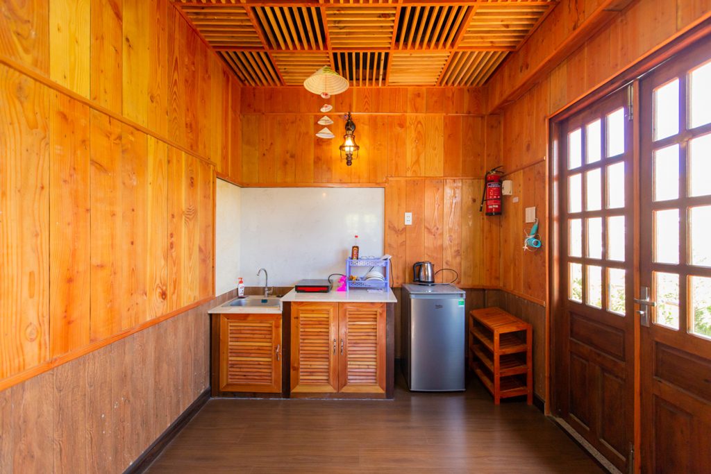– Thiết kế: gồm 4 căn hộ mini, với mỗi căn hộ mini gồm: 1 phòng khách + bếp; 1 nhà vệ sinh và tầng gác là phòng ngủ. Sức chứa của mỗi căn mini là 2-4 người. Đầy đủ tiện nghi: Tivi, tủ lạnh, bếp, gia vị cơ bản…
