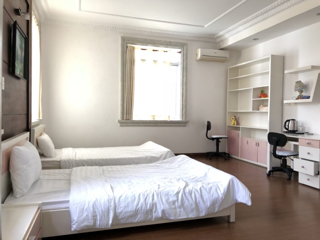 Biệt thự riêng biệt hoàn toàn yên tĩnh, được trang bị đầy đủ tiện nghi – cao cấp – sang trọng – hiện đại.Wifi tốc độ cao, điều hòa không khí, phòng khách, phòng ăn, nhà bếp, 4 phòng ngủ, 5 giường, 4 phòng tắm. Nhà bếp được trang bị tủ lạnh, bếp điện và ấm đun nước và dụng cụ nấu nướng, bát đũa, lò vi sóng… Truyền hình vệ tinh màn hình phẳng cũng được trang bị trong biệt thự.