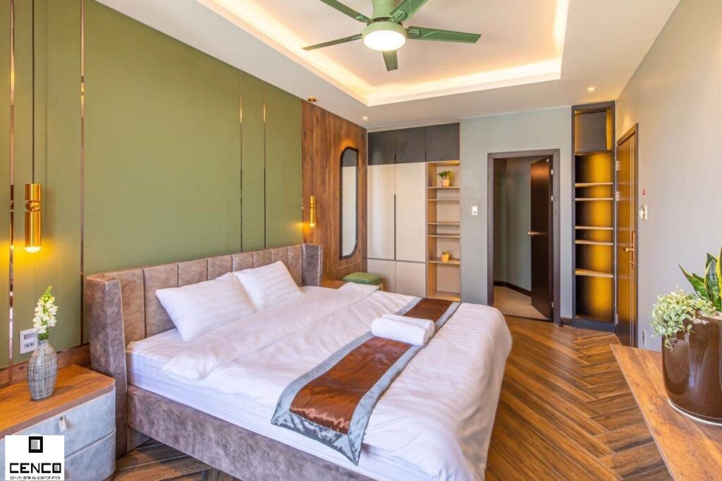 - 5 phòng ngủ (4 phòng 1 giường, 1 phòng có 1 giường lớn và 1 giường nhỏ)