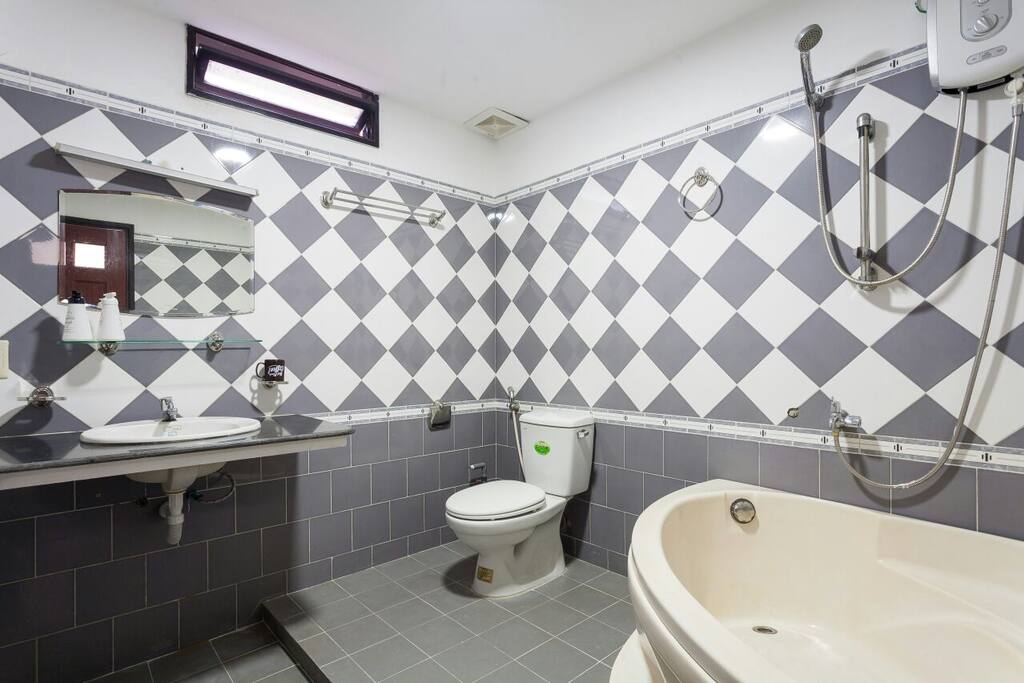 – Phòng tắm + Khăn tắm + Dầu gội + sữa tắm + Bình nước nóng + máy lạnh.