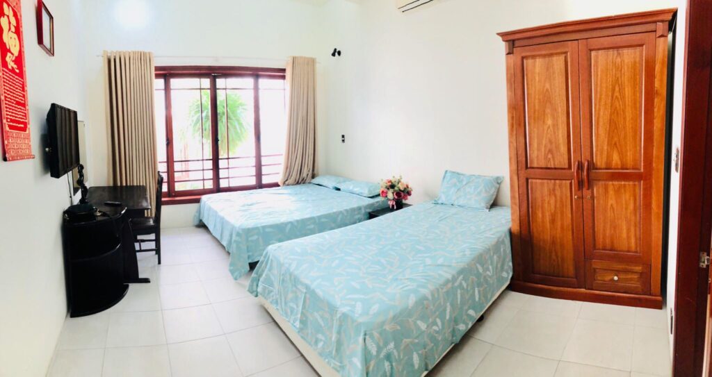 - Nguyên căn villa 5 phòng ngủ + 7 giường + Phòng khách+ bếp. Phù hợp cho đoàn 12 người lớn với 5 bé dưới 6 tuổi.