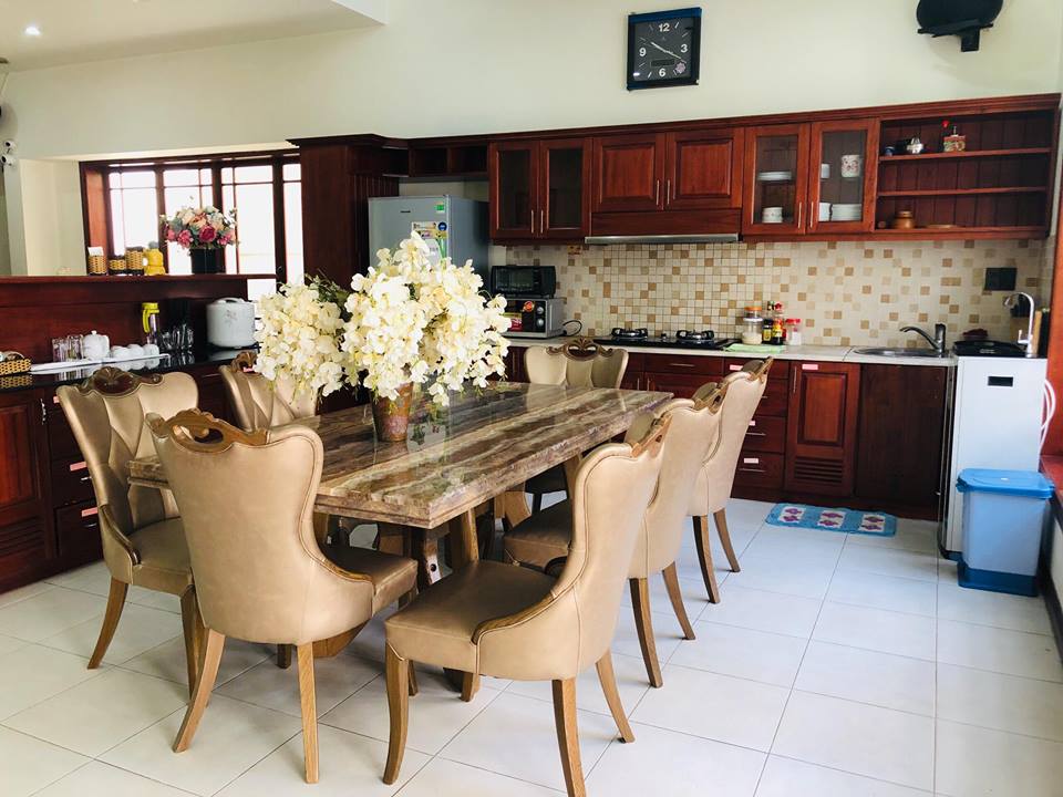 Villa có không gian rộng, thoáng mát. Có rất nhiều khu vực ngồi ngoài trời để du khách có thể nghỉ ngơi thư giãn. Ở đây có khá nhiều cây xanh, hành lang rộng và đầy đủ tiện nghi, rất thích hợp cho những đoàn đi đông và có cả trẻ nhỏ.