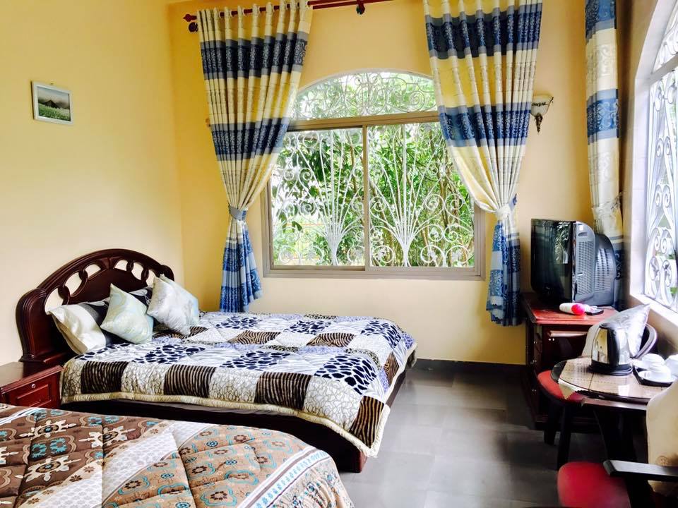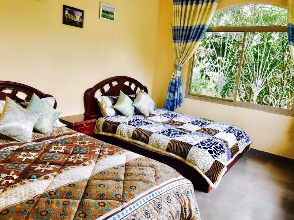 - Mô tả: Gồm 2 giường chuẩn family (1 giường 1m6 và 1 giường 1m4) với diện tích 30 m2 với toilet trong, ti vi lcd 32 inch, quạt