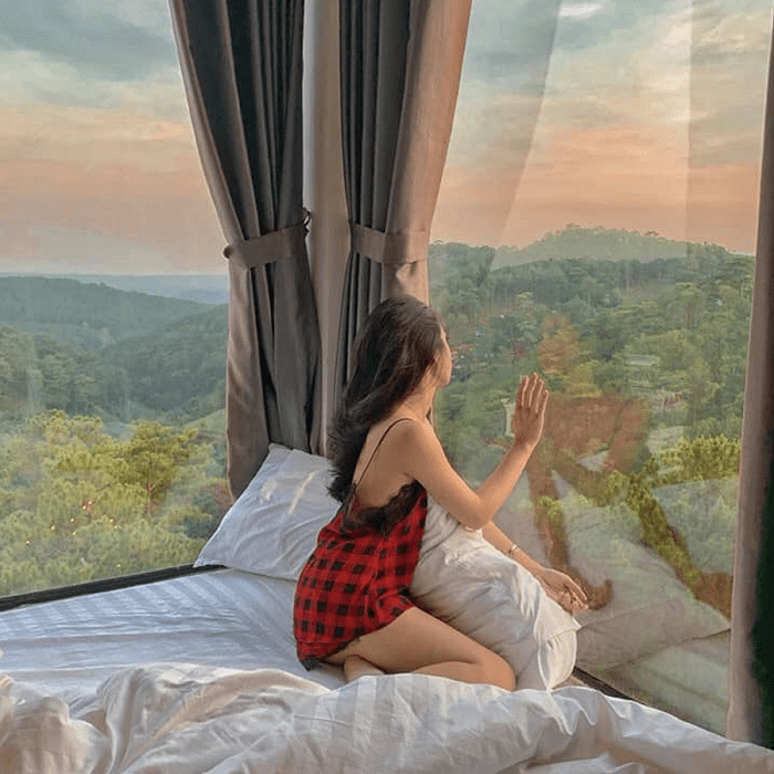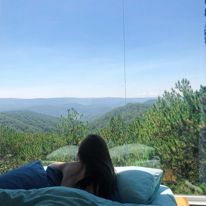 Khu nghỉ dưỡng cũng thiết kế cửa phòng bằng loại kính trong suốt chất lượng cao như các resort đẳng cấp 5 sao. Từ trong phòng nghỉ, bạn có thể thỏa thích ngắm cảnh và chụp những bức hình cực kì ấn tượng. Phong cách trang trí của phòng cũng theo định hướng tối giản mang đến cảm giác cực kì nhẹ nhàng, quyến rũ.