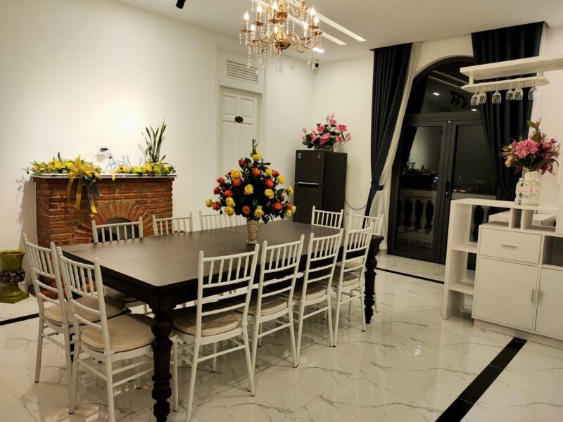 – Phòng ăn và bếp ăn đầy đủ dụng cụ nhà bếp, tủ lạnh, máy giặt, lò nướng, bếp điện, nồi cơm, ấm siêu tốc