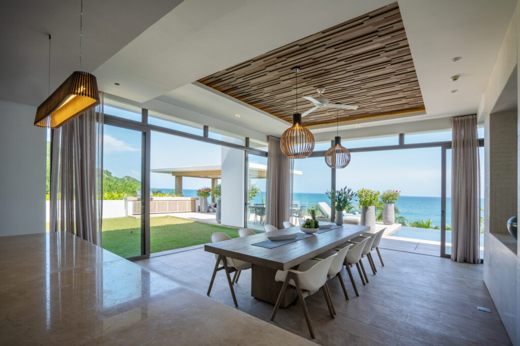 Để nói về sự sang trọng và tráng lệ, không gì có thể so sánh với những dinh thự sát biển ở đây. Mỗi dinh thự sang trong với không gian 3 tầng lộng lẫy cùng tầm nhìn hướng biển có thể chào đón 10 khách lưu trú cùng 1 lúc. Một trong những điểm nhấn của khu dinh thự tuyệt đẹp này là một hồ bơi vô cực và khu vườn được cắt tỉa công phu. Các tiện nghi ở đây bao gồm khu vực BBQ, khu bếp xinh xắn, phòng ăn trong nhà và ngoài trời và phòng giải trí chuyên dụng. Tất cả 5 phòng ngủ đều có máy lạnh, được trang bị đầy đủ tivi, hệ thống xem phim tự chọn, minibar, các vật dụng sinh hoạt cao cấp, tủ quần áo và két sắt.