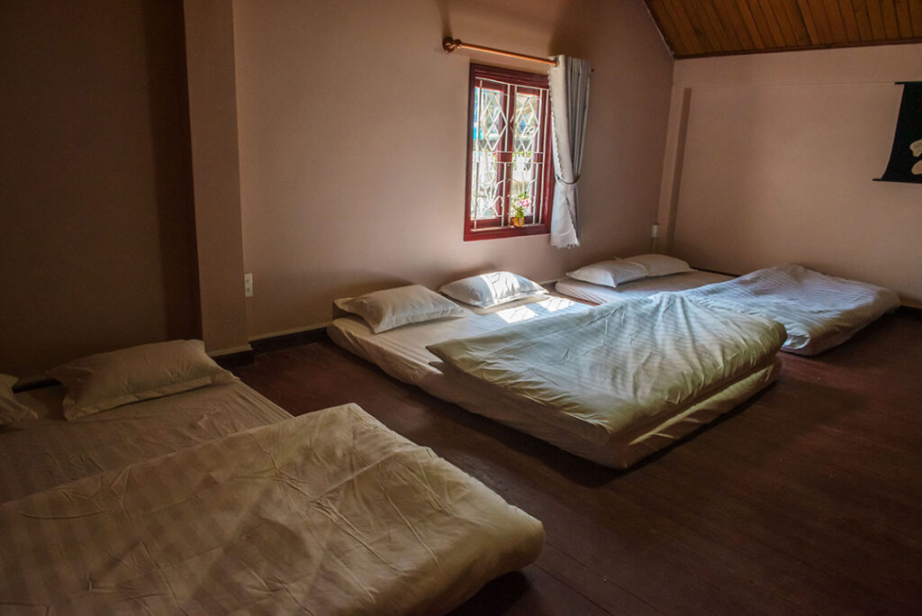 – Thiết kế: 5 phòng ngủ trong đó có 2 phòng 2 giường 1,6m và 2 phòng 2 nệm 1m6 và 1 tập thể kê 3 nệm 1m6, 3 toilet ( 1 toilet trong phòng, 2 toilet dùng chung)
