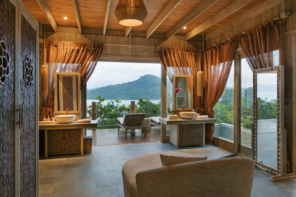 Khu nghỉ dưỡng bao gồm 37 biệt thự riêng bằng gỗ sang trọng và rộng rãi với bể ngâm, sử dụng đồ nội thất bằng gỗ thủ công thân thiện với môi trường. Du khách sẽ được tham gia vào một loạt các hoạt động, từ trải nghiệm bữa ăn độc đáo tại The Rock Spring đến trekking ngắm cảnh. Đắm mình trong cảm giác thanh bình và ngắm nhìn toàn cảnh hoàng hôn của Vịnh Ninh Vân hùng vĩ tại Nhà hàng Sen Deck, thưởng thức các món ăn địa phương được yêu thích. Jungle Spa cung cấp một loạt các liệu pháp chăm sóc sức khỏe toàn diện, các chương trình Yogivà các liệu pháp điều trị đích thực để nâng cao trải nghiệm của mỗi khách.