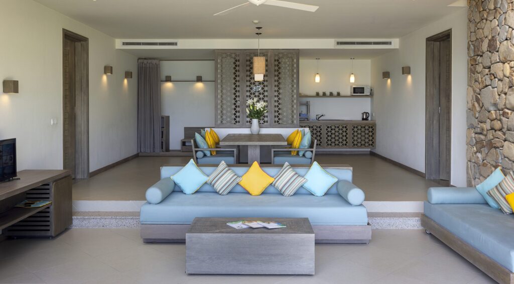 Rộng rãi ấm cúng nhưng không kém phần sang trọng là điểm nổi bật của Cliff Villa hai phòng ngủ. Villa này là lựa chọn hoàn hảo, tuyệt vời cho gia đình và bạn bè những giây phút đoàn tụ, sum vầy. Các phòng vừa có tầm nhìn không giới hạn ra khung cảnh đại dương tuyệt đẹp mà vẫn đảm bảo được sự riêng tư trong thời gian nghỉ dưỡng.