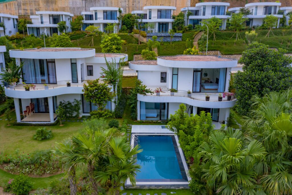 Biệt thự (villa) 3 phòng ngủ hướng vườn tại Ivory resort Lương Sơn, Hòa Bình- có bể bơi, công viên nước, sân vườn rộng, cảnh quan đẹp (thiết kế bởi kts Võ Trọng Nghĩa)- Cho thuê du lịch nghỉ dưỡng, vui chơi trải nghiệm, checkin, tổ chức sự kiện BBq, team building.
