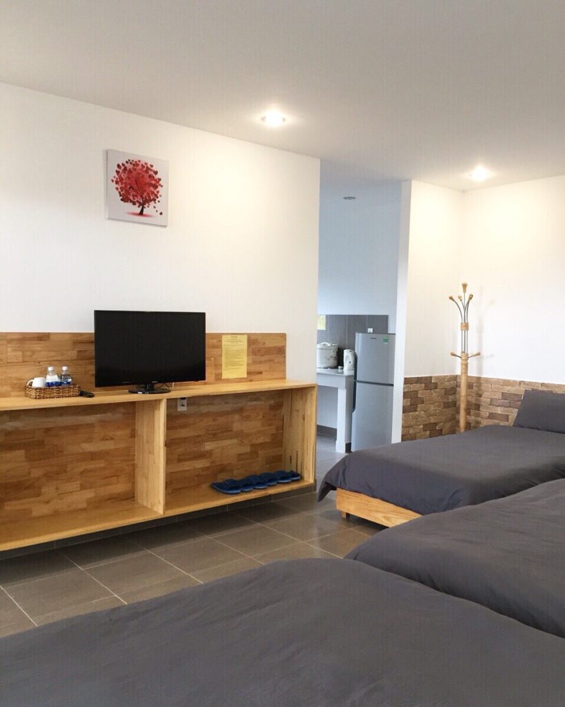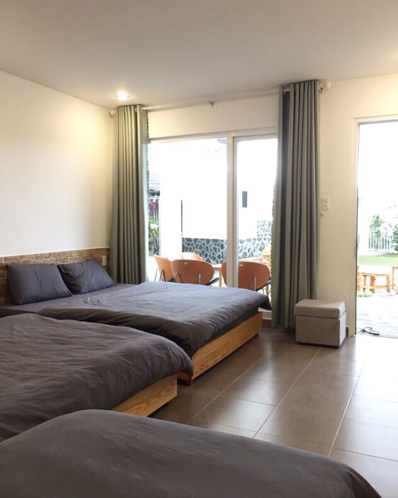 Biệt thự được thiết kế với không gian mở hết sức, tràn ngập trong thiên nhiên và cây cỏ Đà Lạt. Trong khuôn viên có 2 căn villa: Loại 1 là căn 2 phòng ngủ: 1 Phòng giường đôi và 1 phòng tập thể, 2 toilet, có bếp và dụng cụ nấu ăn ở được tối đa 8 khách. Loại 2 là căn 5 phòng ngủ : 3p đơn + 1p đôi+ 1p tập thể, 5 Toilet, có bếp đầy đủ dụng cụ nấu ăn ở được tối đa 16 khách.