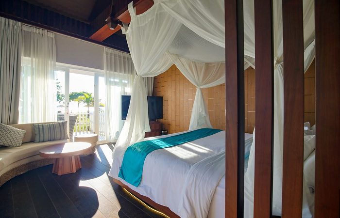 Bạn sẽ chiêm ngưỡng vẻ đẹp nên thơ của đường chân trời màu xanh ngọc bích trên hòn đảo thiên đường này khi nghỉ tại Executive Villas, một trong những villa sang trọng và tiện nghi nhất của Mercury Phu Quoc. Sự hài hòa trong từng đường nét, màu sắc như những con sóng lăn tăn màu trắng trên nền của đại dương xanh. Phòng rộng rãi bao gồm hồ bơi riêng biệt, phòng tiếp khách, giường ngủ cỡ King với màu sắc của ánh sáng đèn được thiết kế ấm áp mang đến cho du khách sự yên tĩnh và lãng mạn nhất.