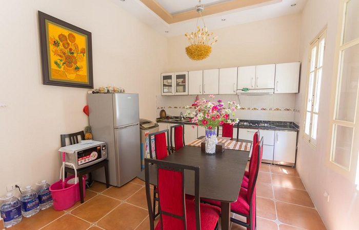 – Có đầy đủ phòng bếp, phòng khách, có bếp và đồ dùng nấu nướng: tủ lạnh, lò vi sóng, bát đũa, bếp nấu…