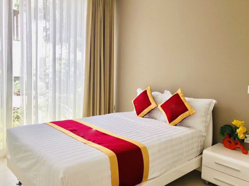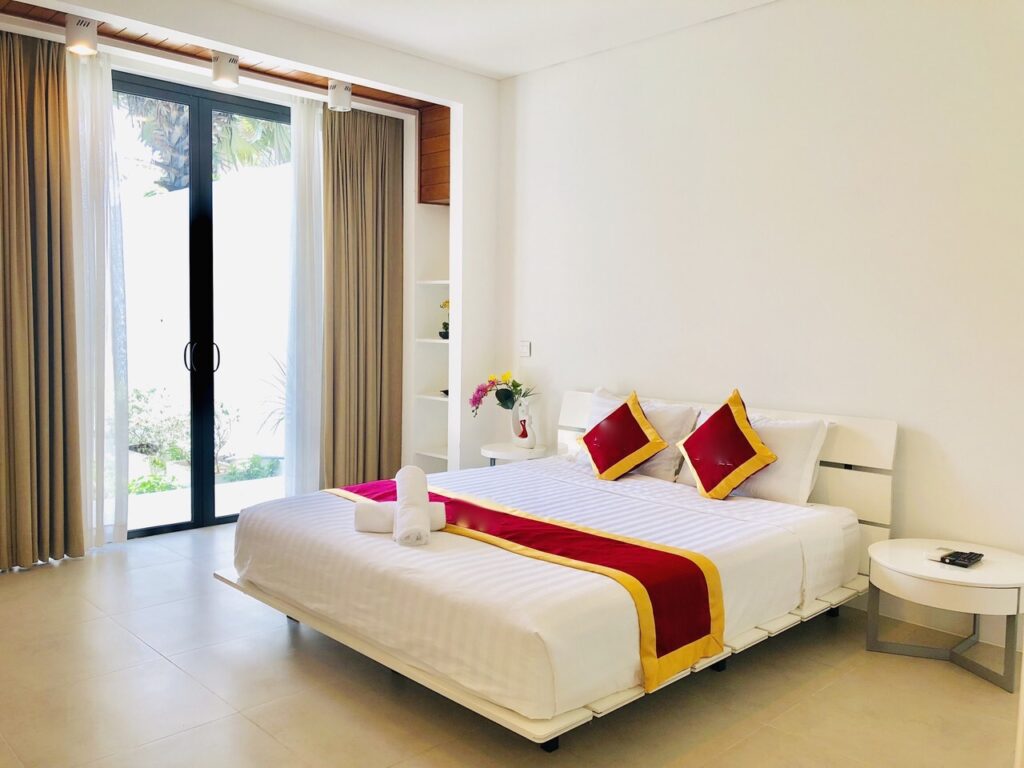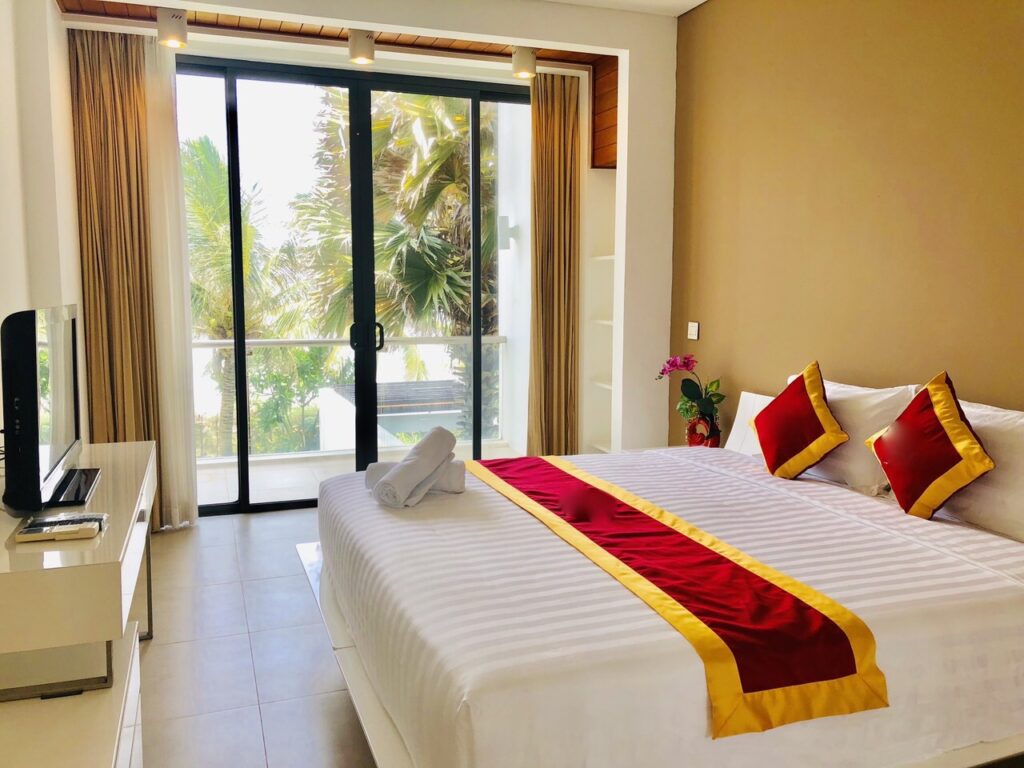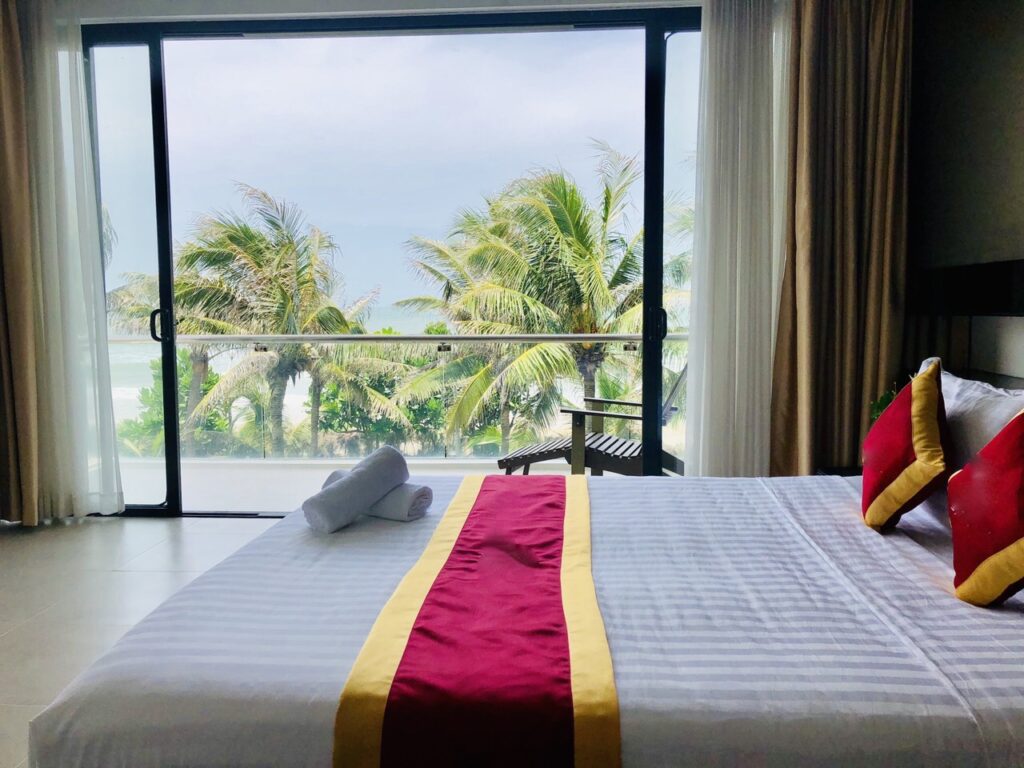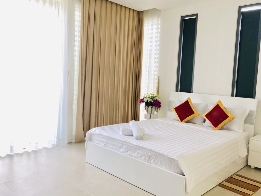 - Các phòng ngủ có ban công rộng rãi để đón ánh sáng thiên nhiên và không cản tầm nhìn với view biển cực đẹp, hoặc view hồ bơi sân vườn tươi xanh.