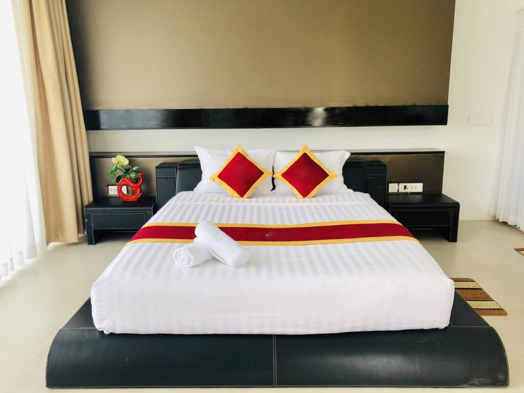 - Mỗi phòng ngủ được trang bị đầy đủ Tivi, truyền hình cáp, internet tốc độ cao. Giườn queen size: 1m8 x 2m, nệm dự phòng 1m6