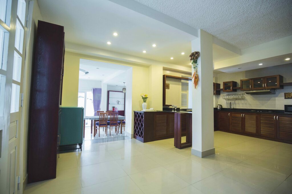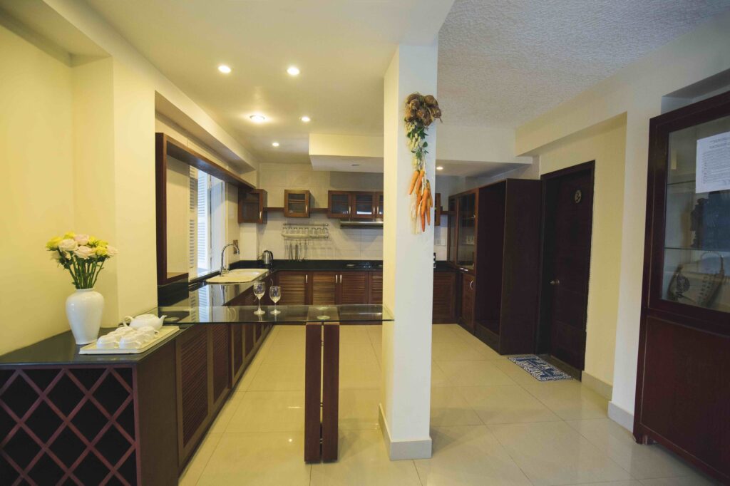 + Villa có bếp, phòng ăn. phòng khách đầy đủ.