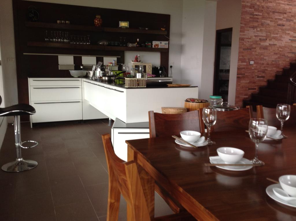-Khu bếp thoáng đãng, sạch sẽ, có tủ lạnh, lò vi sóng, nồi cơm điện, bát đũa, bếp lẩu, ấm siêu điện,…
