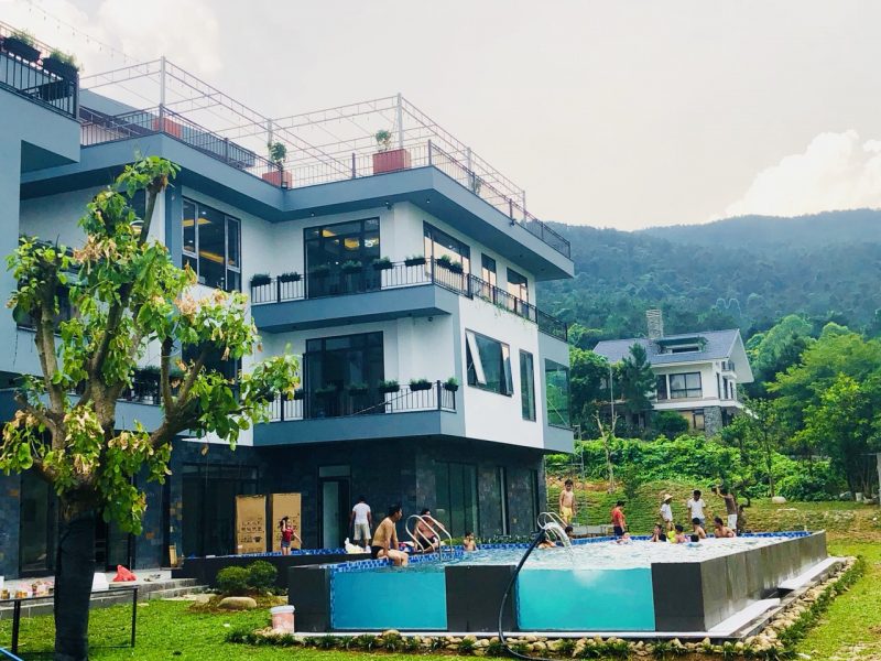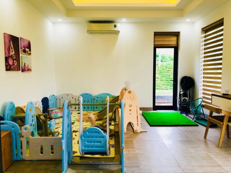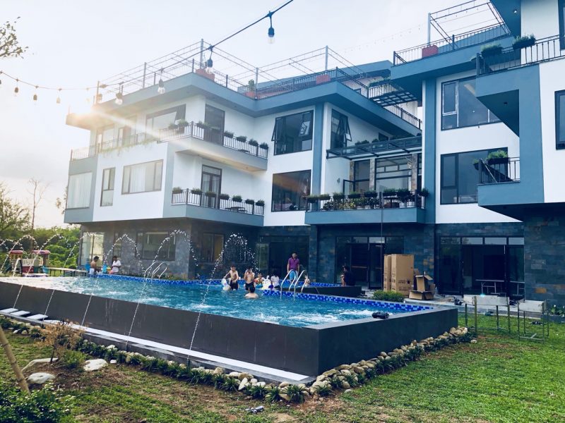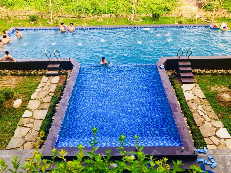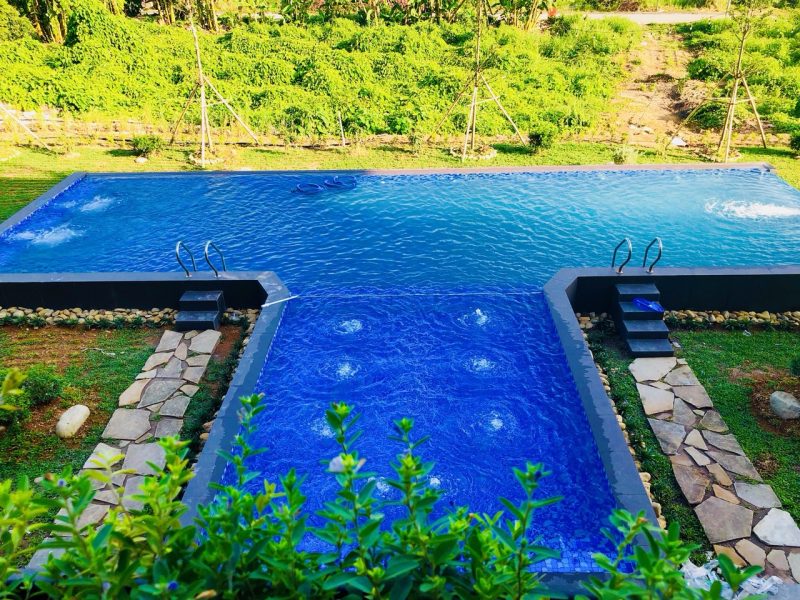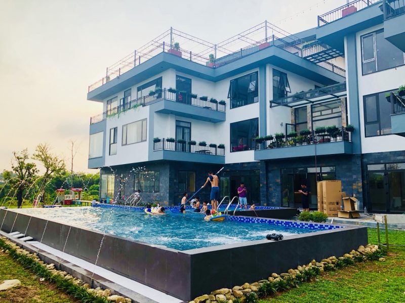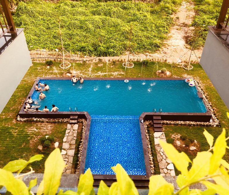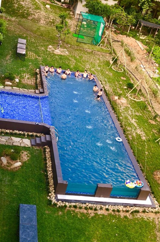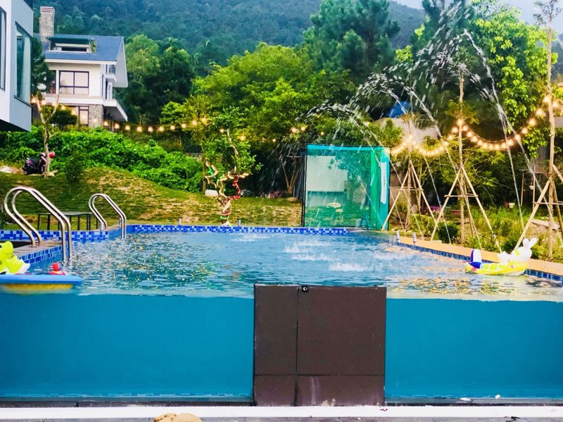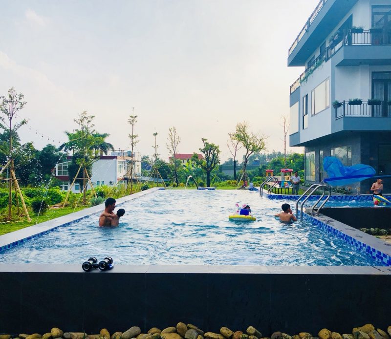 + Bể bơi riêng ngoài trời (bể người lớn rộng 5.5m, dài 18m, sâu nhất 1m7, bể trẻ con 4m dài 5m sâu 50cm)