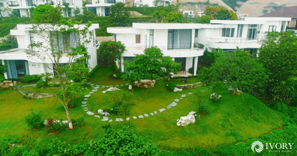 Ivory Villa & Resort với các biệt thự 3 phòng ngủ với tổng diện tích các biệt thự: 400m2, 600m2, 1000m2: hướng vườn, hướng hồ, hướng núi…