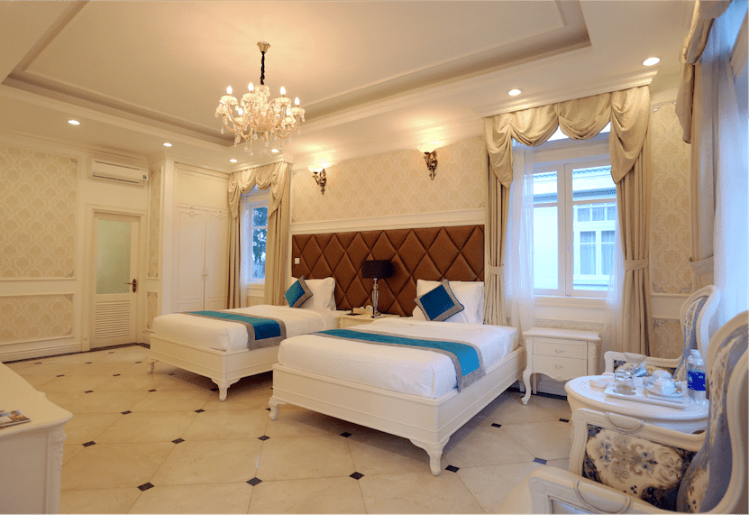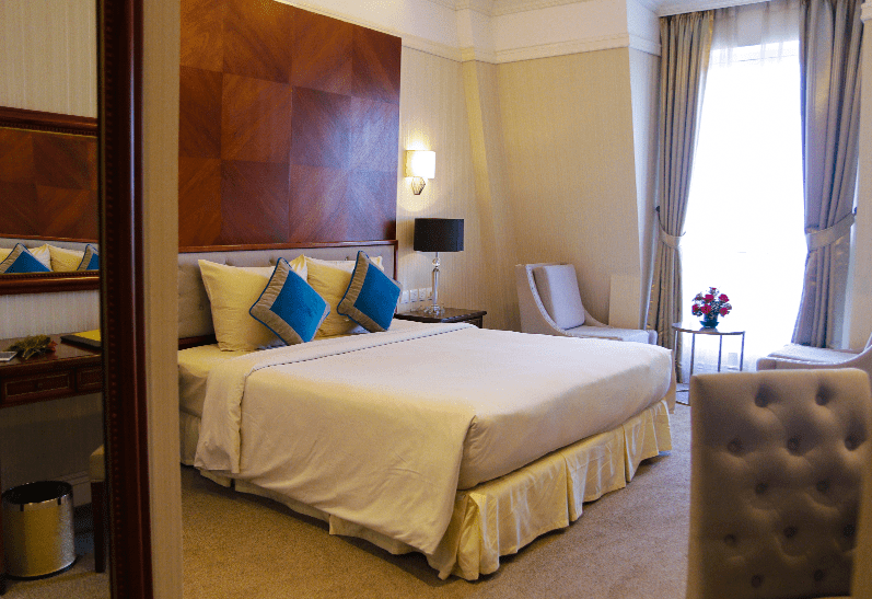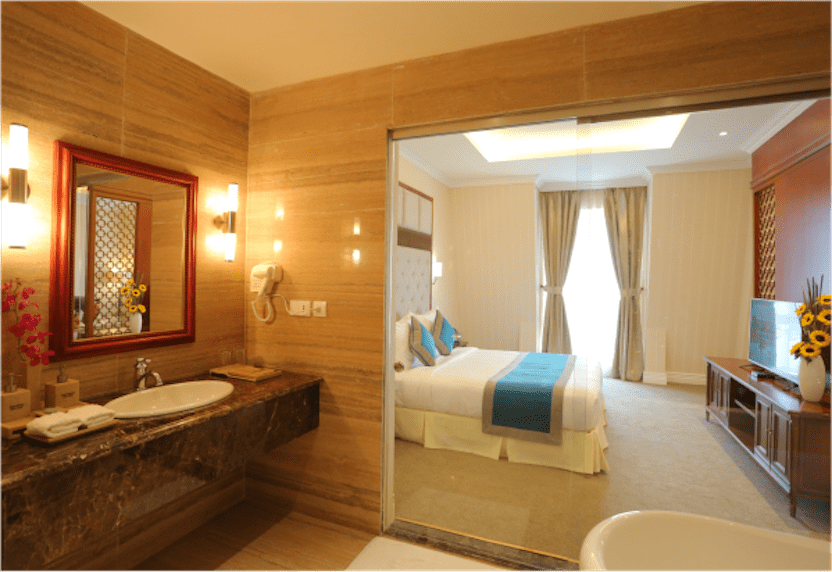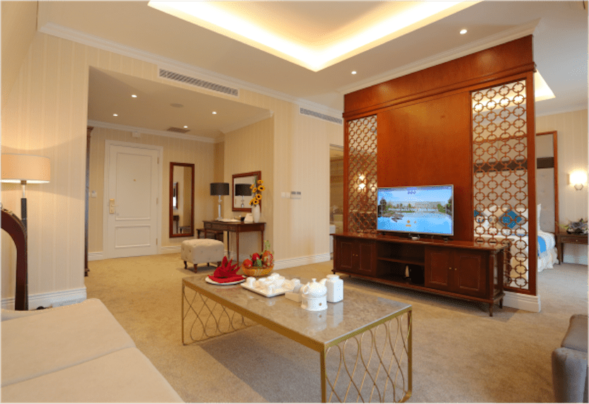 Suite room đẳng cấp với không gian rộng, sang trọng của phòng khách, cách bài trí tuyệt đẹp của phòng ngủ. Hơn thế, Quý khách sẽ hài lòng với điểm tâm được phục vụ tại phòng.