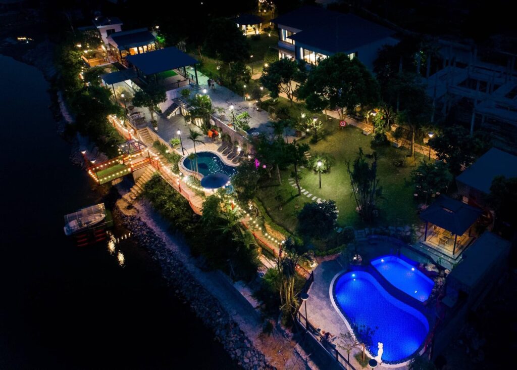 Villa hồ Đồng Đò Sóc Sơn view hồ đẹp, mới nhất có bể bơi riêng, ao câu cá, BBQ,…(VLSSHN015)