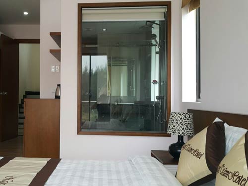 Tất cả 8 phòng (20 m2) trong Biệt thự đều có 2-3 mặt thoáng và đều hướng ra biển, tiếp cận với thiên nhiên. Các mặt thoáng được thiết lập bằng hệ thống cửa kính rộng, Bạn có thể chủ động tạo ra không gian ấm cúng, riêng tư khi đóng lại và không gian thiên nhiên khi mở ra.