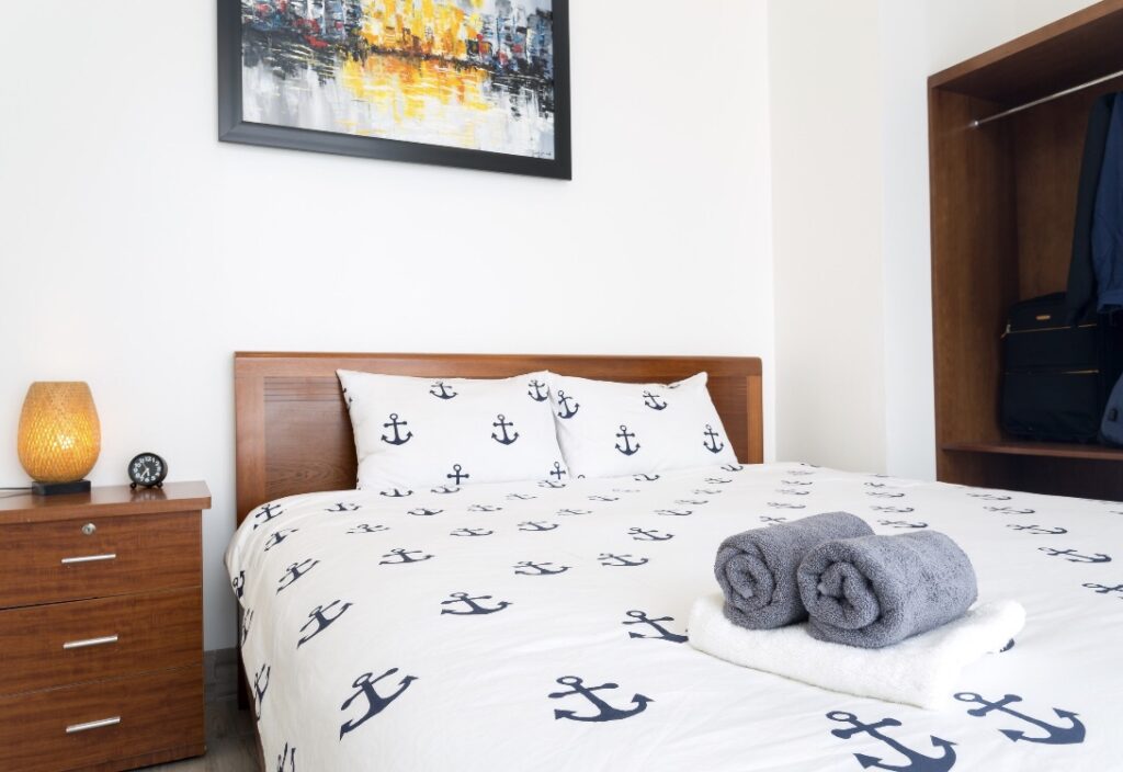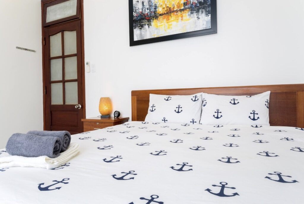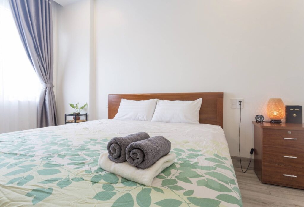 - Khăn tắm, khăn trải giường, xà phòng, giấy vệ sinh