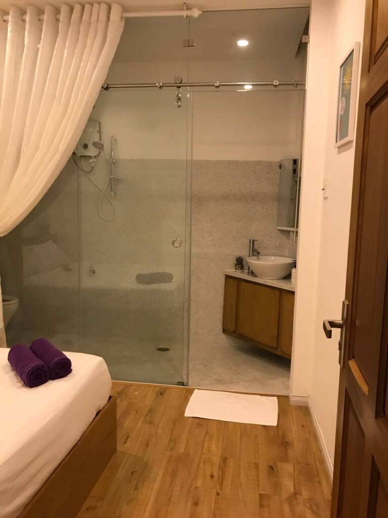 Căn hộ có 2 lầu, mỗi lầu một phòng ngủ và toilet, tầng trệt là quán trà sữa rất dễ thuơng và lịch sự. Có sân thượng, trên đây có thể tổ chức tiệc nướng ngoài trời.