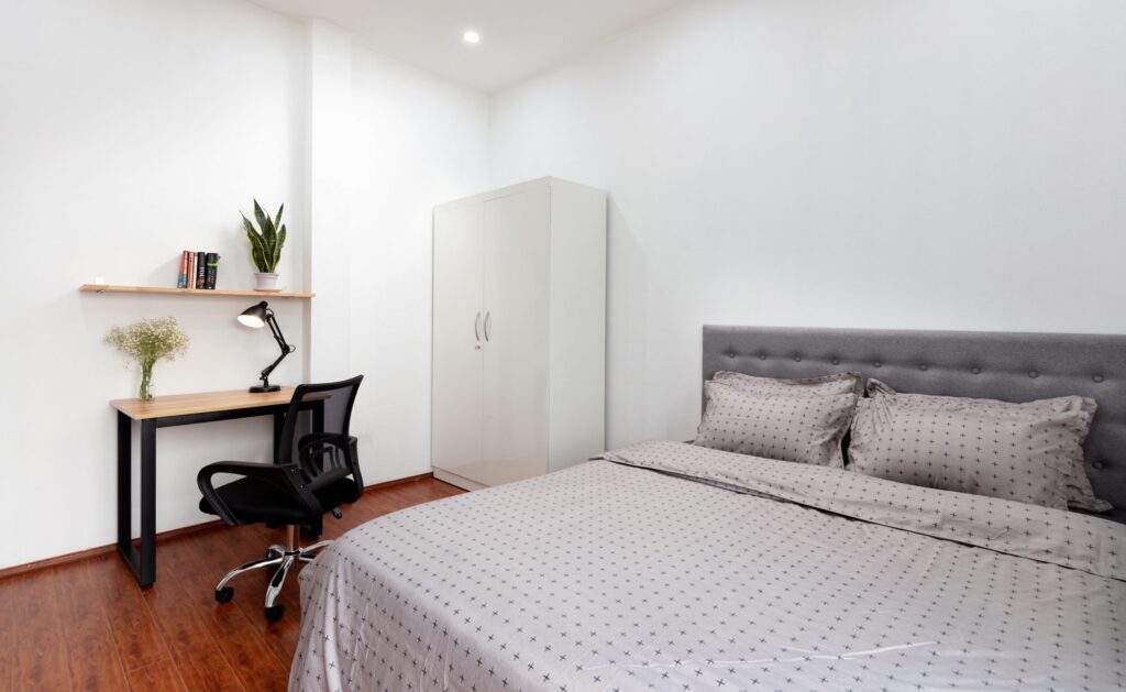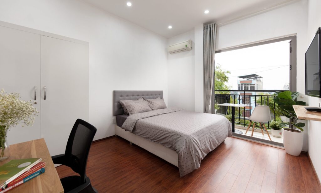 - Diện tích: rộng rãi . Bếp nấu ăn riêng trong từng căn hộ với đầy đủ tiện nghi như bếp nấu, lò vi sóng, tủ lạnh, bát đũa, v.v…)