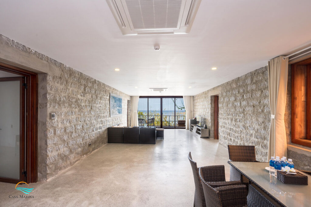 - Phòng khách rộng có bàn ghế sofa để sinh hoạt gia đình