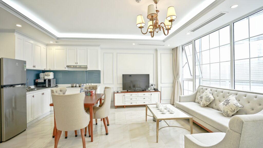 Căn hộ có 2 phòng ngủ, và các thiết bị trong bếp: tủ lạnh,bếp điện, hop, lò vi sóng cũng như dao kéo, đồ sành sứ và đồ dùng. Trong phòng ngủ, bạn sẽ tìm thấy toàn bộ vật dụng cần thiết thoải mái : gối và đêm êm ái, bàn là, ti vi giải trí,…