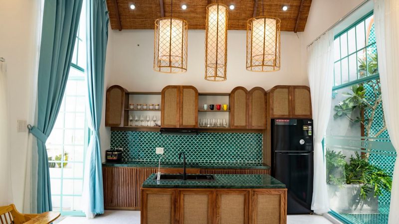 - Tiện ích: Máy sấy, tủ lạnh, tất cả dụng cụ nướng bếp đều đó đầy đủ.