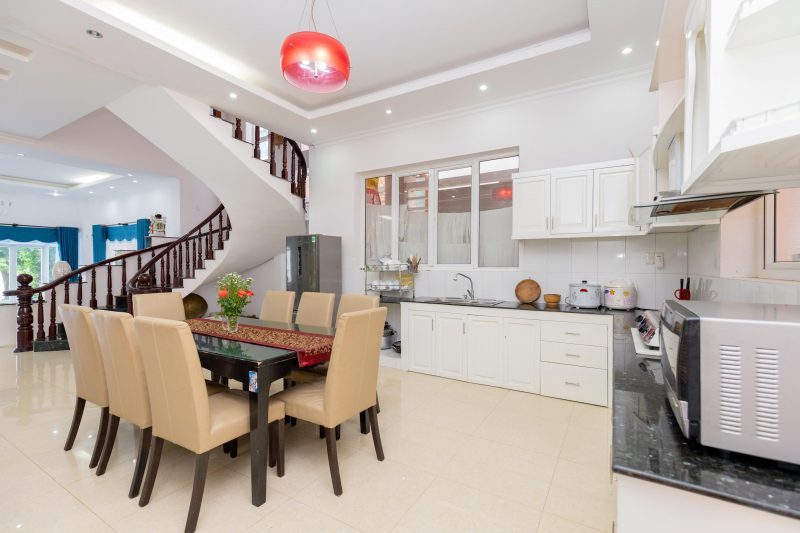– Phòng bếp rộng rãi, đầy đủ đồ dùng nấu bếp: lò vi sóng, lò nướng, nồi cơm điện, bình đun siêu tốc, tủ lạnh, chén bát…