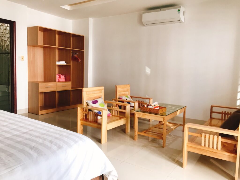 Villa 3 phòng ngủ + 3 giường+ 1 đệm đơn + 4 phòng tắm phù hợp cho 6 – 8 người.