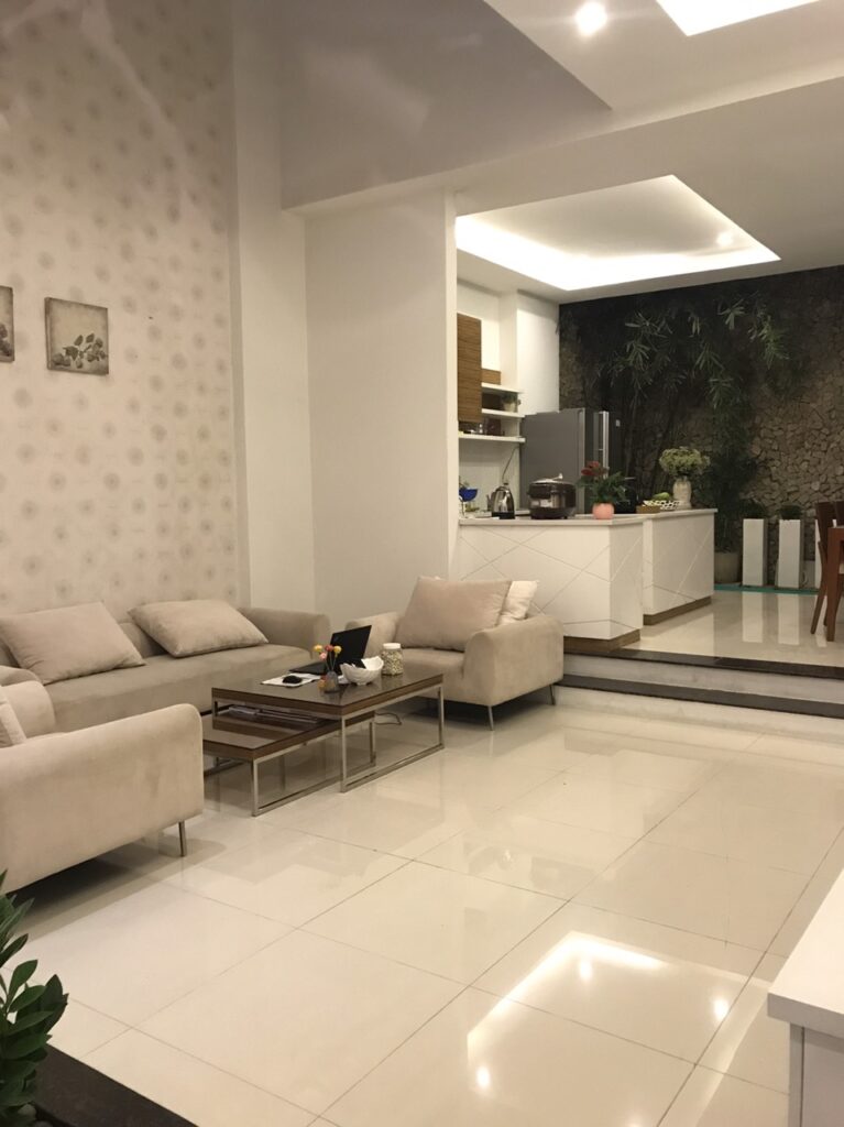 Nhà đẹp và rộng rãi với diện tích mặt sàn 250m2 tọa lạc tại khu đô thị Vĩnh Trung Điềm – 1 trong những khu đô thị đẹp và hiện đại ở Nha Trang. Villa gồm 3 phòng ngủ này có ban công riêng và phòng khách với ghế sofa cũng như TV màn hình phẳng. Ngoài ra còn có nhà bếp được trang bị lò vi sóng, tủ lạnh và bếp nấu.