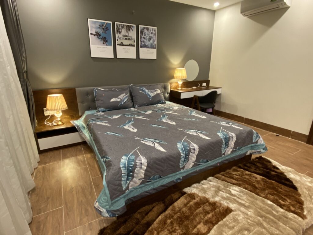 - Villa có 4 phòng ngủ đầy đủ tiện nghi điều hoà Daikin, tivi sony 55” đời mới , tủ lạnh electrolux, máy sấy tóc, bình siêu tốc, bàn là hơi, thiết kế hiện đại (3 Phòng 1 giường đôi 1,8x2m, 1 Phòng 2 giường đơn 1,4x2m).