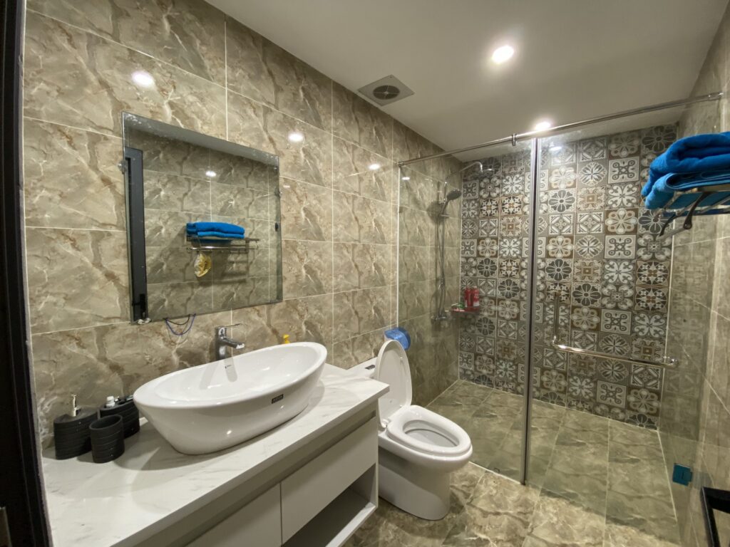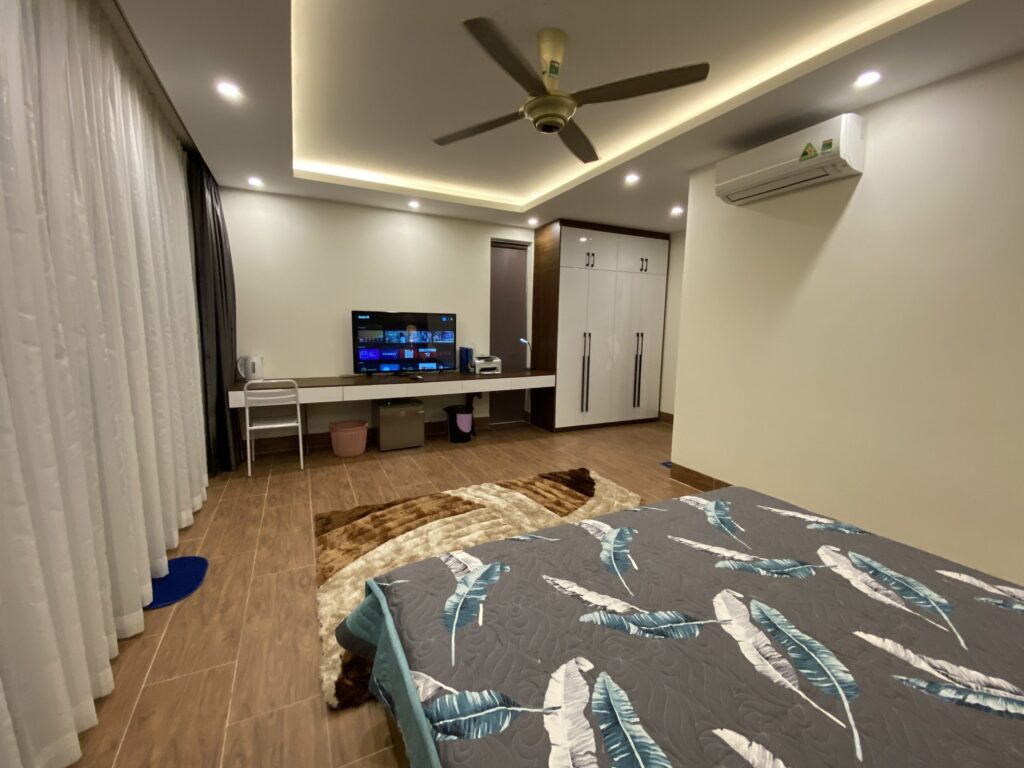 - Phòng khách đầy đủ tiện nghi điều hoà Daikin, sofa hiện đại , tivi sony 75” đời mới, dàn karaoke kèm hệ thống đèn nháy phục vụ giải trí, máy massage chân….