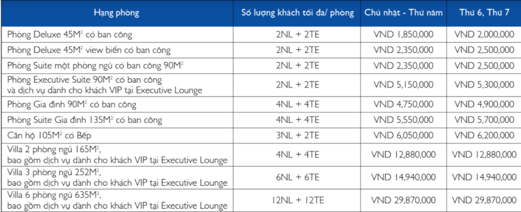 – Phụ thu thứ 6, thứ 7: VND 150,000/ phòng/ đêm