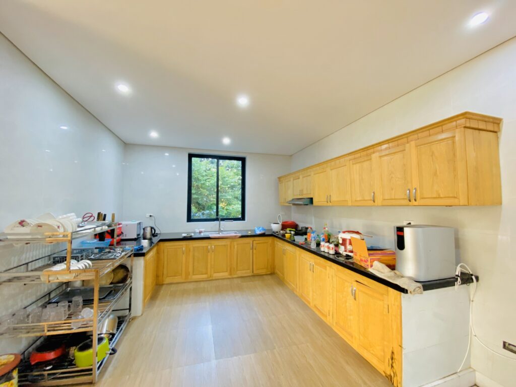 – Phòng khách rộng (có bàn bi lắc) nối liền bếp ăn set up bát đĩa đầy đủ theo tiêu chuẩn, dụng cụ nhà bếp và gia vị cơ bản