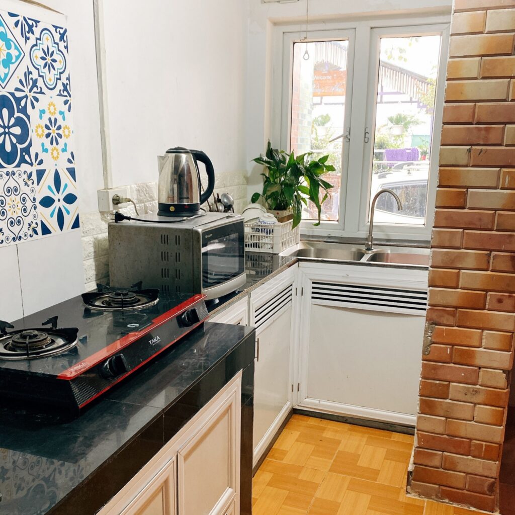 ? Tầng trệt bao gồm phòng khách & bàn ăn rộng rãi cùng bếp đầy đủ dụng cụ nấu ăn có toilet ngay cạnh