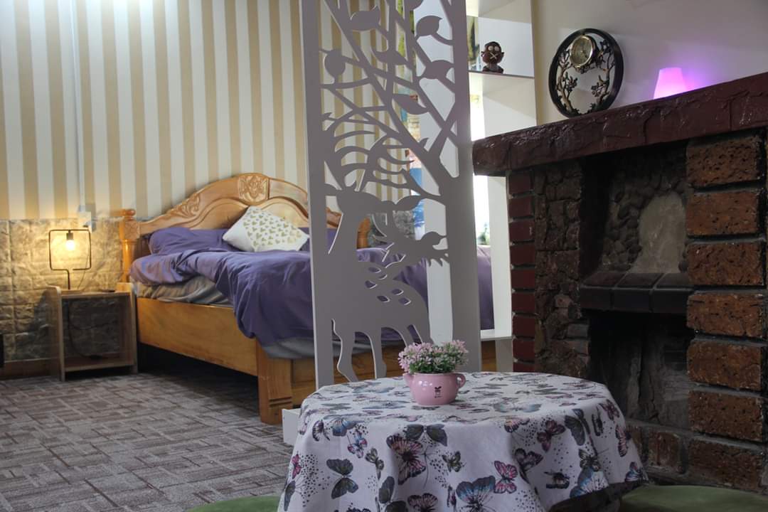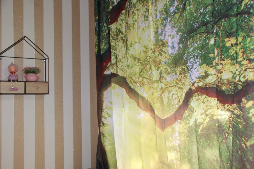 ? Lầu 1 gồm 2 phòng ngủ và 1 toilet dùng chung, không gian sinh hoạt ấm cúng (tường gỗ, sàn thảm,…)