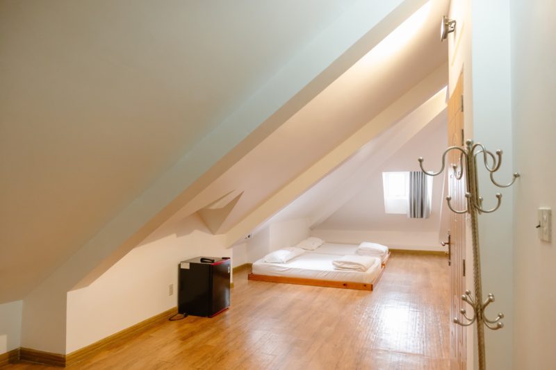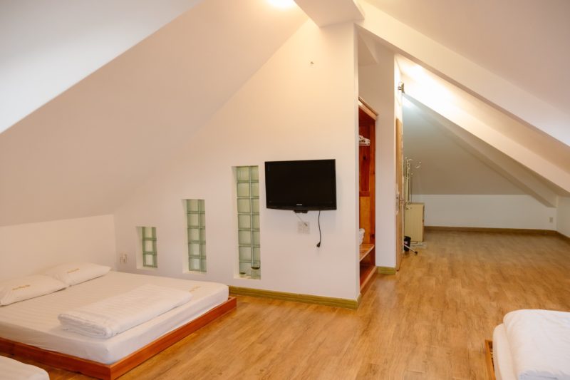 1 phòng áp mái 4 giường + 1 wc trong . Tiêu chuẩn 10-18 khách?Xung quanh được bao bọc bởi những cây Tùng mang lại cảm giác mát dịu . Ngoài ra còn có khu vực bbq được thiết kế cho khách tổ chức nướng ngoài trời …..
