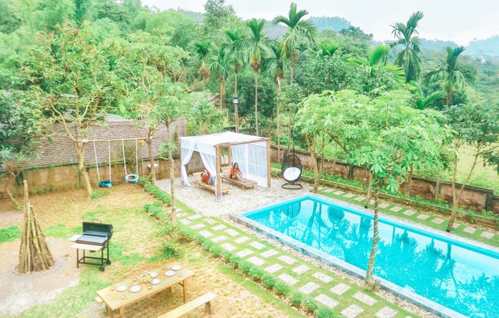 Ecosy villa Ba Vì, Hà Nội 3 phòng ngủ, 1500m2+ bể bơi riêng, sân vườn rộng cho thuê du lịch nghỉ dưỡng, check in, trải nghiệm, team building, Bbq