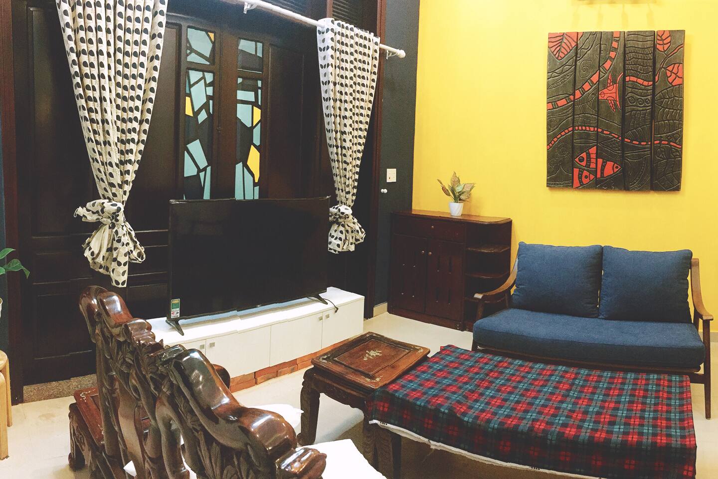 • phòng khách với TV 60 inch (TV lớn), kết nối internet, wifi miễn phí.