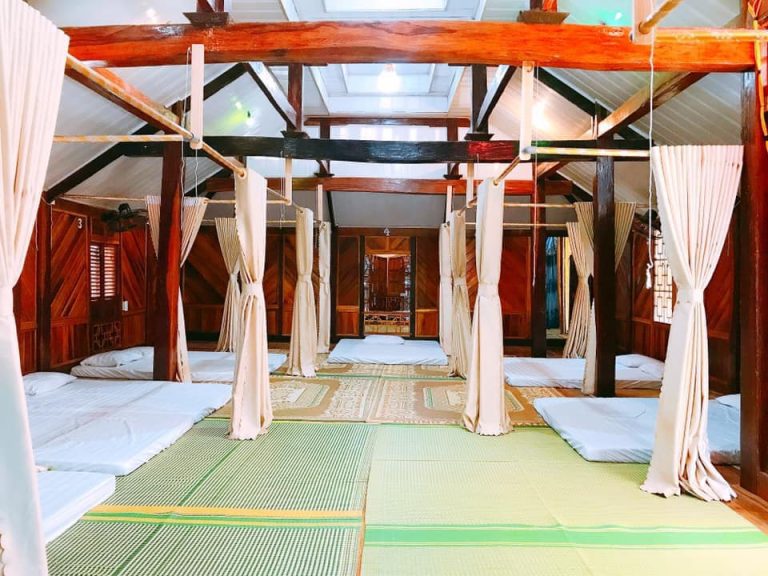 Các phòng của homestay xây dựng gần như bằng tre, nứa, bàn ghế, giường ngủ và một số vật dụng bằng mây cói tạo cảm giác rất bình yên, nhẹ nhàng mà gần gũi.