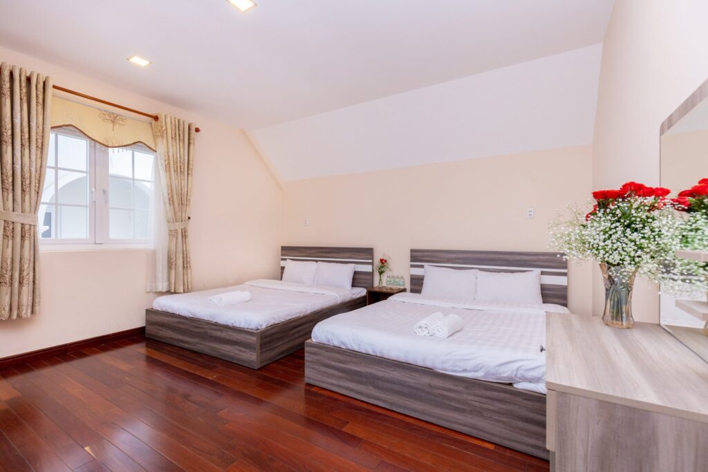 – 6 phòng ngủ: 4 phòng đơn + 1 phòng đôi + 1 áp mái 6 nệm