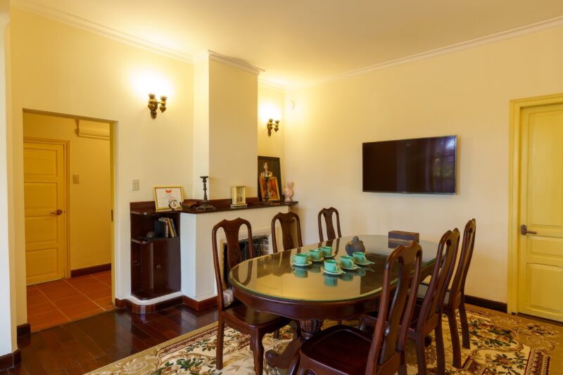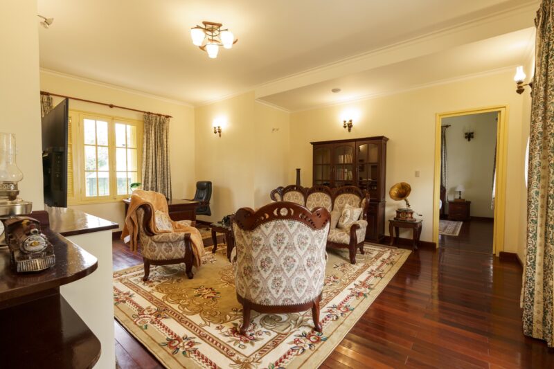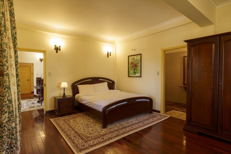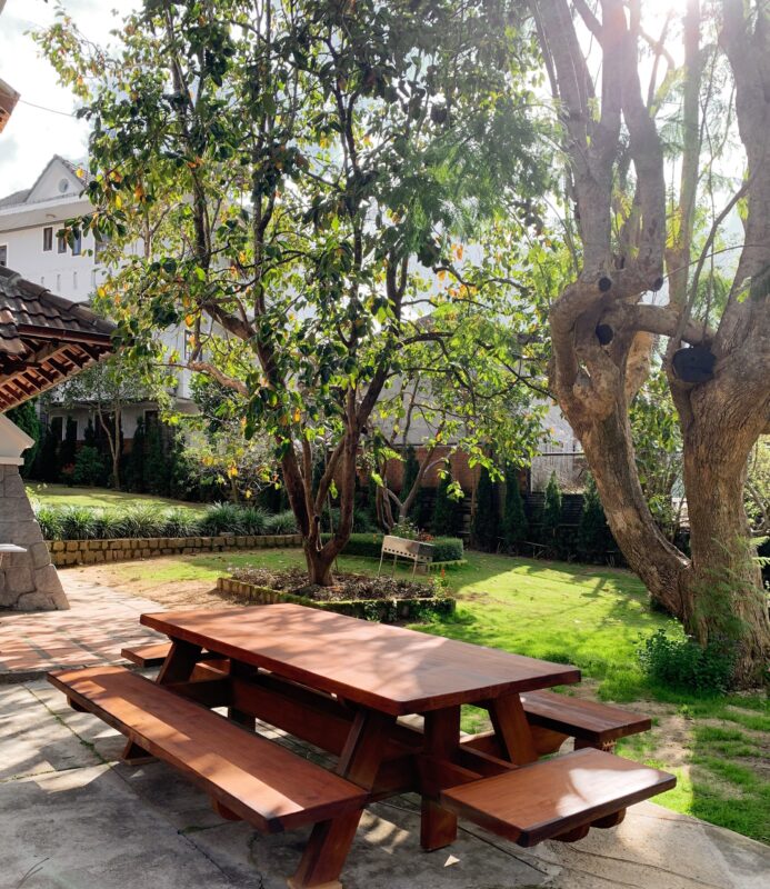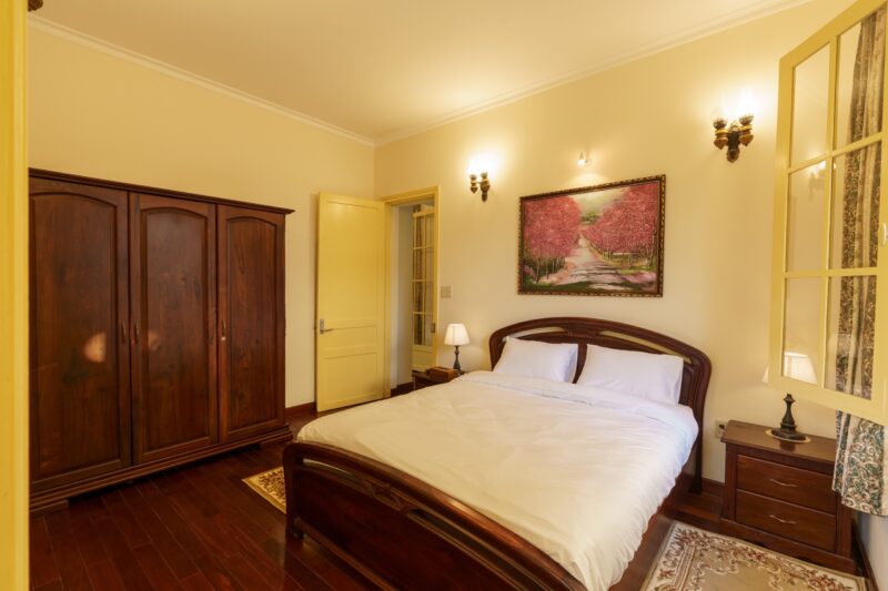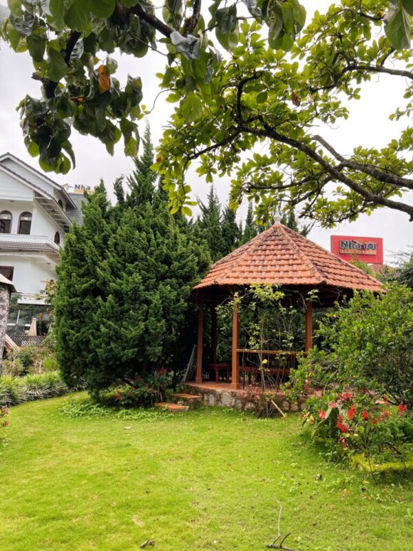 ✅ Có sân vườn rộng 1.900m2, bên trong được trang bị nội thất gỗ Cẩm Lai cao cấp đầy đủ, bao gồm sofa, bộ bàn ăn, giường ngủ và lò sưởi. Villa ở thế đất cao nên có view bao quát thành phố rất đẹp