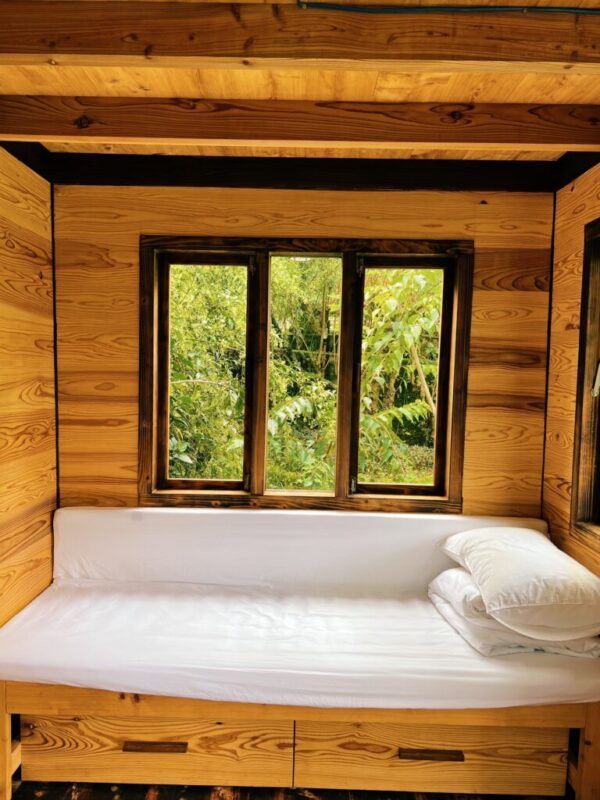 – Cabin gỗ gồm: 1 giường ngủ áp mái, 1 giường đơn, khu vực nấu ăn cơ bản và 1 WC