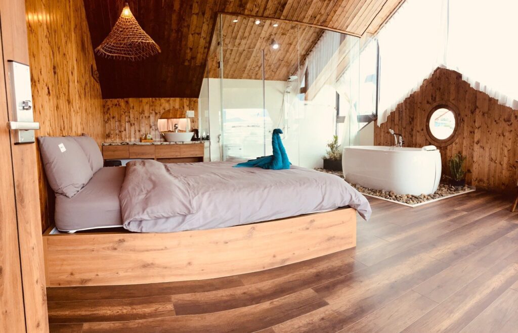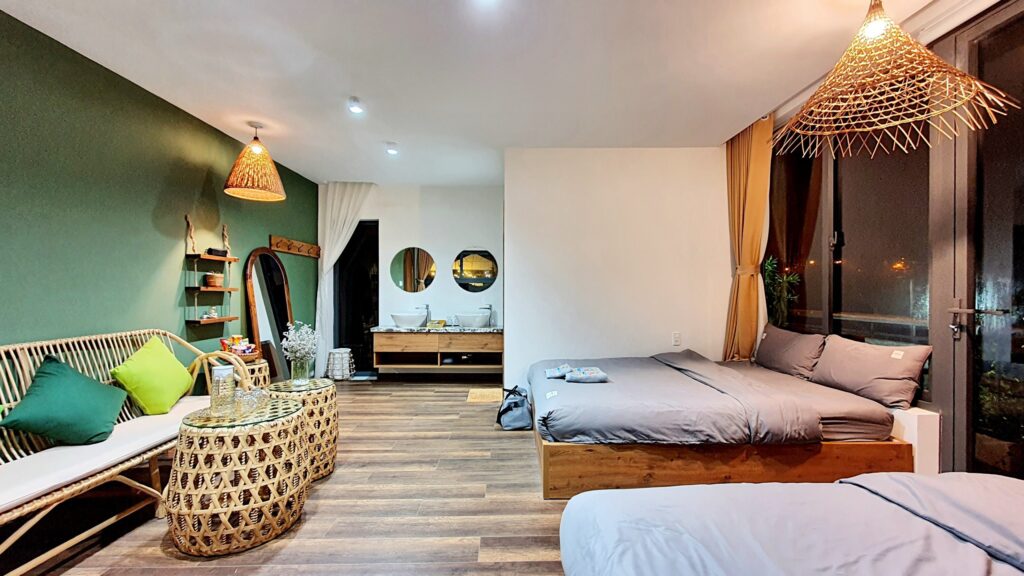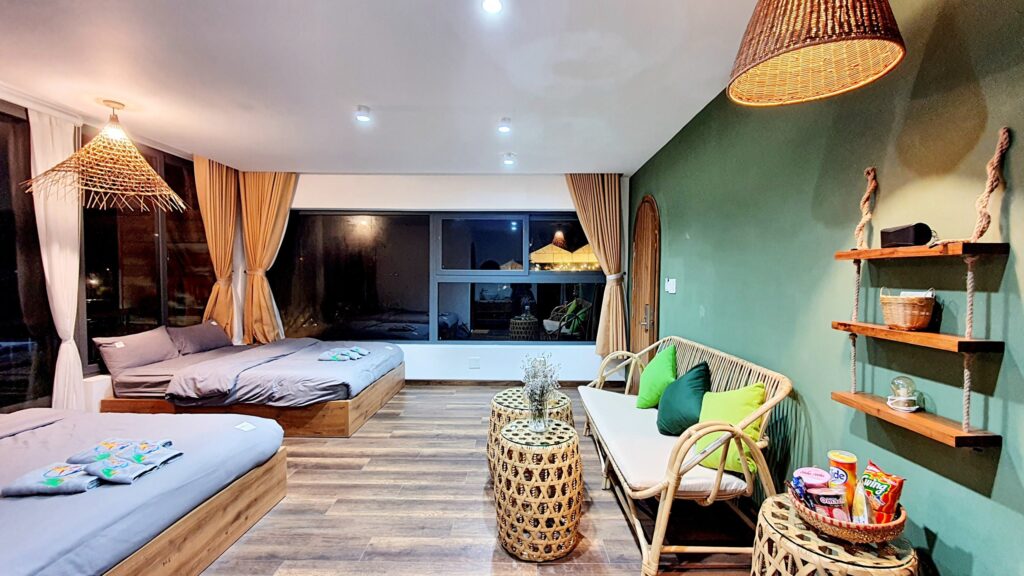 Homestay với thiết kế hiện đại, gồm 5 phòng Vip – 1 phòng Dorm – 2 Bungalow.