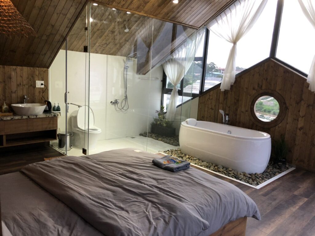 – Nội thất cao cấp cùng hệ thống phòng tắm mở, hoà mình vào thiên nhiên với sân vườn đầy sắc hoa. Ngoài ra, home còn có một góc cà phê view nhà lồng check-in siêu lung linh.